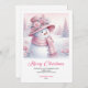 Celebrate the season with this cute watercolor pink coquette snowman kids Christmas card, set in a magical snowy forest. Editable text lets you personalize instantly, and the digital download provides an easy, fast, and festive holiday greeting.