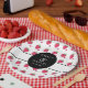 These charming paper plates feature a playful strawberry-themed design with hand-drawn strawberries and tiny hearts on a clean white background, accented by a bold black circle. Soft, romantic, and whimsical, they add a joyful touch to wedding table settings, bridal showers, and celebratory gatherings. Perfect for couples who love a modern romantic aesthetic with sweet, festive details inspired by love and summer charm.