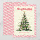 Whimsical Pink Watercolor Christmas tree Holiday Card