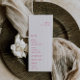 Whimsical Pink minimalist, wedding guest place card and menu. Features, bright pink typography and light pink stripe pattern backgrounds. Fonts and background colour can be customised. Please note: guest names must be entered and added to your cart individually.