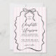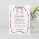 A simple handwritten script modern pinstripe with bow doodle wedding invitation. For a simple, minimalist, casual, fun, wedding stationery style. Available in print, as a digital download, or both. Black typography on pale pastel pink pinstripes. Offered in a variety of card stocks. Easily editable template. A relaxed casual wedding doodle style, leaning a bit towards a cute romantic Parisian style with a hand drawn vibe.