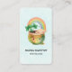 Business cards with an adorable illustration featuring a smiling green and gold pot with a cute rainbow,