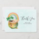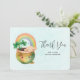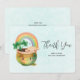 Thank you card with an adorable illustration featuring a smiling green and gold pot with a cute rainbow,