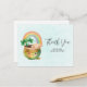 Thank you postcard, with an adorable illustration featuring a smiling green and gold pot with a cute rainbow,