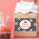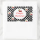 Fun canning label done in black with white polka dots and juicy red cherries. A large white circle, in the middle, is decorated with cherries, on top, and red custom text below. Personalise this cute label for your cherry products.