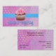 Whimsical and fun bakery business card done in a pink, blue, and yellow gold dots on satin background, with lovely graphics of a pink iced cupcake decorated with pink and blue candy dots, set on a blue satin looking ribbon. Personalise the custom text, on the front and back of the card, to suit your business needs. Great for at home bakers too.