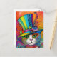 whimsical psychedelic Colourful Kitty in a Tophat Postcard