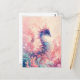 This enchanting postcard features a majestic, dragon-like seahorse in vibrant shades of indigo and violet. The creature drifts gracefully through a dreamlike underwater forest of soft pink and peach coral. Rendered in a lush, painterly style, the scene is filled with ethereal light, floating bubbles, and soft watercolor textures that create a magical marine atmosphere. The background glows with a warm, hazy light, making the intricate details of the seahorse's fins truly stand out. This postcard is a perfect choice for sending a whimsical greeting, a magical note of encouragement, or as a beautiful decorative piece for ocean lovers and fantasy fans alike.