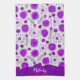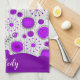 Whimsical purple white hearts flowers floral name tea towel