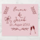 This chic wedding sparkling wine label features quirky squiggles and whimsical pink wedding elements. Easily customisable with the bride and groom's names and wedding date.
