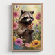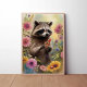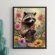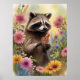 Whimsical Racoon and Wildflowers Nature Art Poster