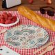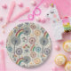 Rainbow and Dandelions Paper Plate - Playful seamless pattern featuring rainbows, dandelions, and wildflowers in soft pastel shades of red, blue, and orange on a calming grey background. Perfect for nature lovers, boho style enthusiasts, and those who enjoy cheerful, uplifting designs. Ideal for spring, summer, birthdays, and whimsical-themed events.