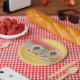 Colourful hand illustrated rainbow elements give these hot air balloon birthday plates a fairytale feeling. Find matching items in my shop.