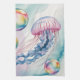 Whimsical Rainbow Jellyfish Watercolor Design Tea Towel