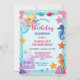 whimsical rainbow mermaid seahorse star birthday save the date