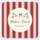 Whimsical Red and Blush Pink Striped Wedding Square Sticker