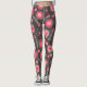 Whimsical red and grey hearts and flowers floral leggings