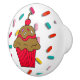 Whimsical Red Chocolate Cupcake with Cherry on Top with sprinkles cabinet or drawer knob.