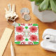 Whimsical Red Flowers Green Leaves On White Art Key Ring