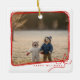 Whimsical Red Ribbon Frame Holiday Photo Ceramic Ornament