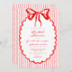 Whimsical Red Watercolor Bow Stripe Bridal Shower Invitation