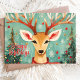 Celebrate the holidays with this charming reindeer greeting card, featuring a whimsical reindeer adorned with festive ornaments and surrounded by Christmas trees and snowflakes. The hand-painted design adds a unique and cosy feel, perfect for sending heartfelt holiday wishes. Ideal for spreading joy and warmth this Christmas season.