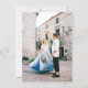 Spanish wedding invitations. This whimsical wedding invitation features a navy blue hand drawn frame against a light blue striped background. At the top of the invite, there is a doodle scribble illustration of a diamond ring in a seashell ring box. The details follow with the couple's names in charming script lettering. Ideal for summer, italian, beach, yacht, and coastal wedding themes. Cards reverse to an engagement photo of your choice. Edit most wording and text colors to make this sweet wedding invite fit your event needs and personal style. View the collection linked on this page for the full wedding suite or visit our store for more wedding invitations. An English-language version of this design is available in our store for bilingual weddings. Invitación de boda con temática costera en español. Invitación editable con rayas azules y diseño elegante inspirado en la playa, perfecta para bodas junto al mar.