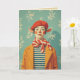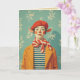 Step into a world of holiday magic with this charming retro-style Christmas elf artwork! Featuring a festive elf dressed in a bright orange coat, classic Breton striped shirt, and a candy-cane striped scarf, this character brings vintage flair to the holiday season. With rosy cheeks, a red clown nose, and whimsical pointed ears under a cheerful red beret, this elf exudes playful spirit and joyful mischief. Set against a soft teal background adorned with delicate floral patterns, the scene radiates nostalgic charm and artistic elegance. Perfect for holiday cards, home decor, gifts, or festive fashion, this design adds a unique, artistic twist to your seasonal celebrations. Whether you’re decorating your space or searching for the ideal Christmas gift, this captivating elf image is sure to warm hearts and spark smiles. Bring timeless holiday cheer to your life with this delightful, one-of-a-kind festive portrait!