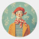 Whimsical Retro Christmas Elf Classic Round Sticker