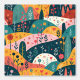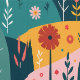 Transport yourself to an enchanting world with this playful folk art landscape pattern featuring rolling hills adorned with delicate wildflowers and botanical elements. The design showcases a vibrant colour palette of teal, coral, mustard yellow, and blush pink, creating a dreamy garden scene. Each hill is decorated with charming florals, whimsical stems, and geometric accents, perfect for nursery decor, children's products, or any space needing a touch of imaginative charm. This modern folk art design brings together Scandinavian-inspired simplicity with playful botanical motifs.