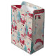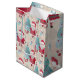 This gift bag is cute as can be with it's pattern of Santa Claus, decorated Christmas trees and stockings all over it. Background is a tan and pink argyle diamond pattern with little splashes of blue paint. There's a coordinating gift tag and wrapping paper in our shop too!