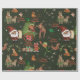 Whimsical Santa Elf & Friends Christmas Green Wrapping Paper