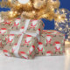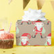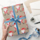 A cute Christmas wrapping paper featuring a pattern of whimsical Santas. Shown here with a taupe background, you can edit the background colour by choosing the "customise it" button and selecting a different colour.