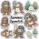 Whimsical set of Sasquatch, Bigfoot or Squatch, that is all ready for summer and summer sports. Add a bit of humour to your water bottle, laptop, car window and more!