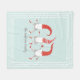 Perfect for the holidays, this cosy fleece blanket design features three whimsical Scandinavian gnomes skipping along in this delightful Christmas design. Modern script text spells out the family name that you can personalise with your desired name or other text. The background is a trendy mint green which contrasts well with the red in the gnome's tall pointed hats and striped stockings. A thin white lined square frame is repeated around the gnomes to frame them in style. In modern day Scandinavia, nisse or tomte is associated with the Christmas holidays, and often perceived as a Scandinavian version of Santa Clause. They are thought to bring good luck to the household.