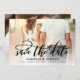 This stylish save the date announcement card features showcases your photo by pairing it with whimsical and romantic modern calligraphy script that reads "Save the date." Simply add your photo to the front and back and fill in the details of your big day using the templates provided.