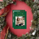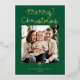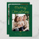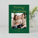 Whimsical Script Bow Green Christmas 2 Photo Foil Holiday Card