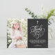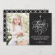 Whimsical Script Rustic Chalkboard First Holy Communion Photo Thank You Card | Send thanks to family and friends with this customisable communion thank you flat card. It features a whimsical script on a faux chalkboard background and quatrefoil pattern. This elegant photo thank you card will also be perfect for Baptism and Christening thank you card.