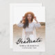 This chic, elegant 2025 graduation announcement features two photos of the college or high school graduate. Whimsical, vintage black script appears on an overlay along with two photos of the graduate. You can adjust the wording on the back of the card to make this either a simple graduation announcement, or a grad party invitation. A stylish and simple graduation design for the class of 2025!