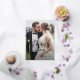 This stylish thank you card features whimsical and romantic modern calligraphy script in foil over your photo. Simply add your photos and the details of your big day using the template provided. Please visit our shop to see more designs like this
