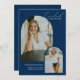 Whimsical Script Navy Blue Arch Photo Graduation Announcement