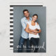 Modern photo engagement party invitation featuring stripes pattern.
