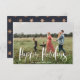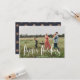 "Happy Holidays" written in a whimsical script on a custom photo background with a seamless star pattern on the back. Check our store for more holiday card options.