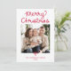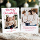 Whimsical Script Red Bow Christmas 2 Photo Holiday Card