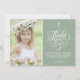 Whimsical Script Sage First Holy Communion Photo Thank You Card