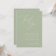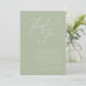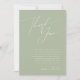 Introducing our stunning whimsical script | sage green 5"x7" thank you card perfect for your simple modern boho spring celebration. Our elegant design includes a vibrant bright, pastel colour palette with a vintage chic calligraphy script. Whether you prefer a minimalist or classic style, our unique editable product offers luxury and elegance, perfect for creating a classy yet romantic touch sure to make your special day unforgettable. Contact us with any questions about the design, and let us help you make the wedding of your dreams.