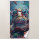 This beach towel showcases a vibrant and whimsical underwater scene, featuring a large sea turtle adorned with oversized, colourful glasses. The turtle's shell and skin are decorated with intricate, rainbow-like patterns, creating a playful and artistic design. Surrounding the turtle are various marine life forms, including fish, coral, and aquatic plants, all illustrated with vivid details. The deep blue ocean background, complete with bubbles and dynamic textures, adds depth and liveliness to the overall composition. Perfect for beach outings, this blanket combines functionality with a fun and eye-catching aesthetic.