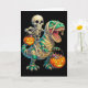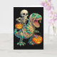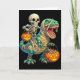 Whimsical Skeleton Riding Mummy T-Rex Halloween Card