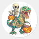 Whimsical Skeleton Riding Mummy T-Rex Halloween Classic Round Sticker