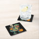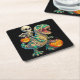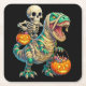 Whimsical Skeleton Riding Mummy T-Rex Halloween Square Paper Coaster